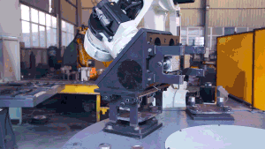 關(guān)節(jié)機(jī)器人抓取能力為20kg,臂展半徑為1811mm,重復(fù)定位精度為±0.08mm;德國雄克雙工位氣爪不僅可在12秒時間內(nèi)快速完成機(jī)床的上下料換料工作,而且送料精度準(zhǔn)確,使用壽命長,可保證400萬次的換料使用頻次;八工位循環(huán)料倉可兼容零件直徑為Φ50mm~Φ220mm,每個工位可承重100kg,碼料高度為400mm,料倉一次儲料可滿足自動線8小時的加工需求。